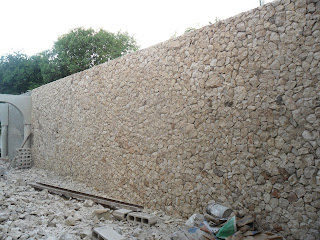 We had a Skype conversation with Arturo last night and he mentioned how nice the wall was turning out. "What wall?", I asked. And he went on about how interesting it is to watch the stone workers cover our wall in stone by cutting and placing all the stone like a large puzzle. How did I miss the conversation when we were told that some of our wall outside would be covered in stone? How did Carlos miss this conversation? After all his first language is Spanish... well actually Puerto Rican spanish... but close enough! I knew that one of the walls in the interior hallway will be covered in stone, that's where the inside waterfall will be... but outside in the courtyard... I totally missed that one! So I reserved judgement until Arturo's photos arrived last night.